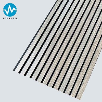Pannelli acustici di pareti in legno a slitta con feltro nero in legno di quercia grigio per la camera d'albergo